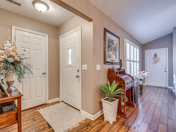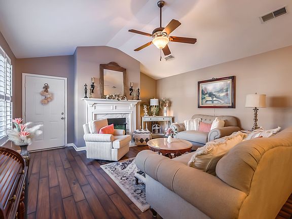 One level living at its best! Renovated baths, new floors, and plantation shutters throughout. Beautiful kitchen cabinets with granite. Updated bath cabinetry. Primary bath is new and stunning! Walk in shower with seating. ADA accessible features and decorated masterfully. So spacious! Walk in closets have ample storage. Hardwood throughout. Large pantry and plenty of kitchen storage. Large open living room with high ceilings and fireplace. Two car garage and gated courtyard for sun and enjoying fresh air. Back of the neighborhood location and end unit. Property is an estate and is being sold as is.