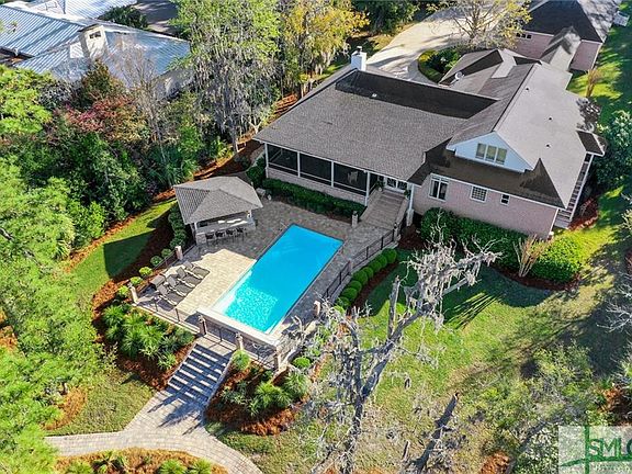 This gem is located in Buckland Hall, which is a private gated community. This custom home and over 2 acres of land is a coastal paradise and playground. Featuring a covered private deep water dock, a pool, a waterfront outdoor kitchen, fire pit, fantastic indoor kitchen, screened porch, theater/games room...everything you could ever want. There is also plenty of room for cars (or collection of cars and toys) in the oversize garage. This property also has a private paved area for storage of a boat and/or RV. Your boat could just be left on the boat hoist, ready to launch and head over to Sunbury Crab Company for dinner at a moments notice, be there in just 10 minutes. Sitting on the screened porch or in the great room gazing out over the pool towards the river, you will enjoy exclusive privacy and unspoiled views of Saint Catherines Sound. Paradise!