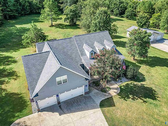 A well-maintained, spacious home on 7.48 acres! Custom built with a traditional floorplan that is great for everyday living and entertaining. This property offers over 2,800 sqft, 4 bedrooms, 4 bathrooms, an isolated master, bonus room, 50x40 insulated heated/cooled shop with a full bath, and a 20x12 detached storage barn! Outdoors, the fenced pasture with pond is ideal for farm animals. Conveniently located off HWY 53 for easy access to Research Park and Redstone Arsenal!