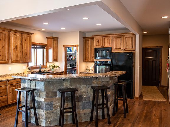 Welcome to your new home. Located in the SouthBay Development in south Bismarck, this 2 story home has plenty of room for sleep, storage, and play! Relax by the custom rock fireplace in the sunken living room with a vaulted ceiling. The kitchen has a large island with breakfast counter and a gas cooktop. This dream kitchen also has double ovens and a large walk-in pantry. The master suite along with 2 other bedrooms and a large laundry room can be found on the second level. The master suite has dual vanities, walk-in shower, walk-in closet, as well as a corner whirlpool tub. Park your recreation toys in the fully finished insulated garage that is over 1,400 sqft. The garage includes 2 floor drains, hot/cold water, and an additional side garage door in the back. This south facing home has Hardie Board siding, is fully landscaped w/ a sprinkler system and a custom rock firepit area to entertain on a calm summer night. Other features include: Knotty Alder Trim and Doors, Knotty Hickory kitchen cabinets, and spray foam insulated walls. This house is one to see in person. Take look at the Virtual Tour and Call a REALTOR Today!