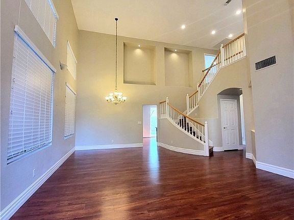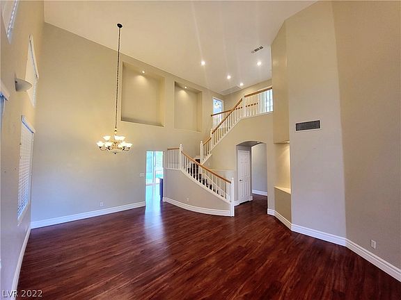 Brand new Pool Plastered !! Double doors entryway to the bright, airy living room/dining room with hardwood flooring. The kitchen features custom cabinets, granite counter, tile backsplash, SS appliances, pendant lights, walk-in pantry, island offers add'l counter/storage space. Dining nook with view of patio; family room with built-in shelving, fireplace. Bedroom downstairs 3/4 bath downstairs. Laundry room downstairs includes Samsung W/D. Upstairs spacious Primary Bedroom has vaulted ceiling, walk-in closet; primary bath features custom shower, jacuzzi tub. All 5 Bedrooms with ceiling fans. Enjoy the Sparkling Pool with a tranquil waterfall, covered patio, mature landscaping. 3-car garage. 2 air conditioning units, ample storage throughout home and garage. Close to Summerlin Hospital, a sports park, Downtown Summerlin, John Bonner ES.
