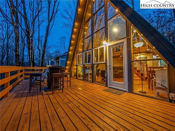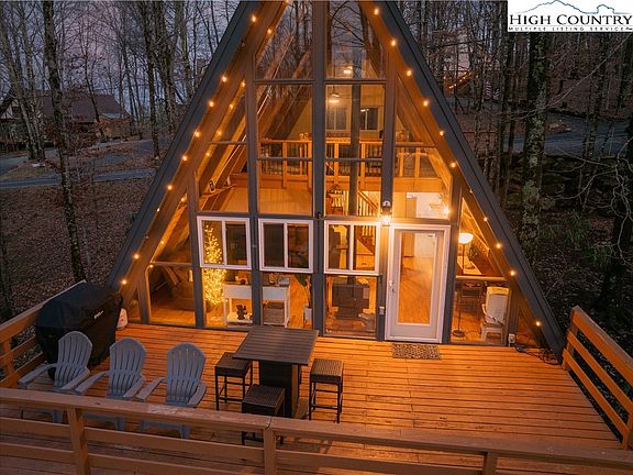 Welcome to “Treehouse Escape,” an extraordinary opportunity to own an exquisite mountain retreat nestled in the breathtaking surroundings of Beech Mountain! This stunning A-FRAME HOME features 4 BEDROOMS & 2 FULL BATHS and it is the only one of its kind currently on the market, making it a rare find that is sure to captivate potential buyers. This property is an ideal choice for anyone in search of a second home or an investment rental property. Upon arrival, you’ll feel transported to a tranquil paradise, embraced by lush greenery & an abundance of wildlife. The moment you step inside, you are greeted by the warm wood interior that exudes coziness, inviting you to relax & unwind. High T&G vaulted ceilings w/ wood beams draw your gaze upward, while a wall of windows enhances the space with natural sunlight drawing you into the treehouse ambiance. The main level features an open floor plan flowing effortlessly from the kitchen to the dining area & family room which has a wood stove ideal for warm fires on cold winter nights! A guest bedroom & full bath also reside on this level, providing convenience for guests. Ascend the staircase to discover a charming loft bedroom, furnished with a daybed & a gaming table. The lower level is equally impressive, offering 2 additional spacious bedrooms, another full bath, laundry room, an office area ideal for remote work & a mudroom for storing outdoor gear. Also included is a storage shed ready to accommodate your outdoor adventure equipment. Being sold "unfurnished" but furnishings are negotiable and the property is eligible for Beech Mountain Club membership. Home has been a successful rental - 2023 AIRBNB $27,904 2024 AIRBNB $16,392 (would have been higher but Oct/Nov was affected by Hurricane). Waiting on VRBO figures.
