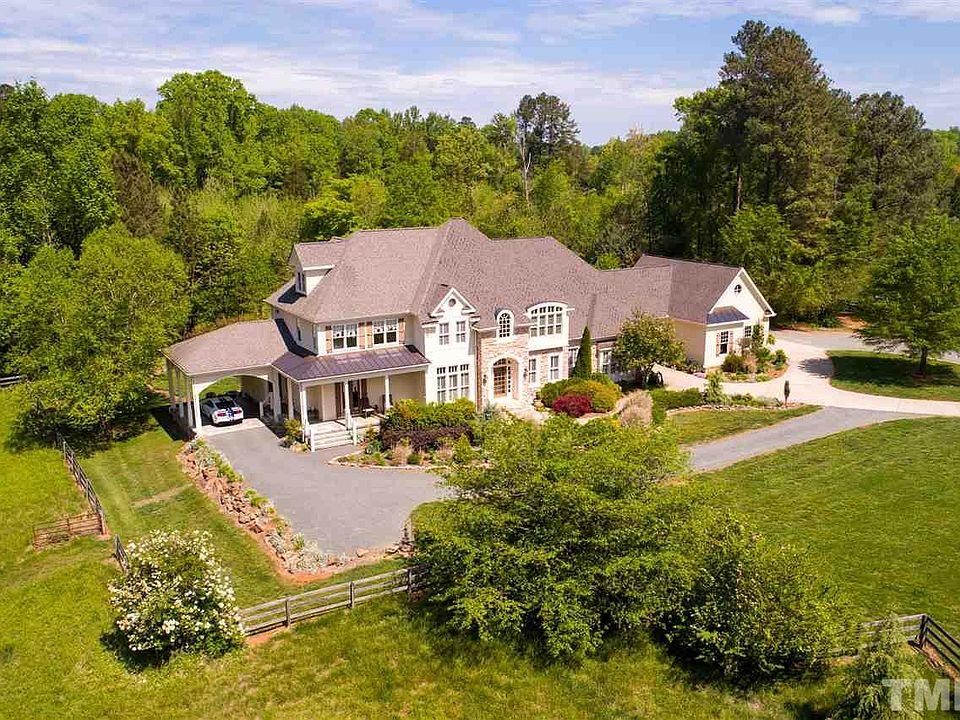 Serene equestrian estate just 15 minutes to CH and Carrboro. Set amidst 16 acres of beautiful pasture and woodland alongside Collins Creek. Peaceful elegance fills this exceptional French provincial home that blends luxury living with country surroundings. Spacious living areas, cathedral ceilings and two master suites are just a few of the amenities. Outdoor features include a large pool and hot tub and is perfect for horse enthusiasts, with fenced pastures and a large barn with four stalls. Easy living!