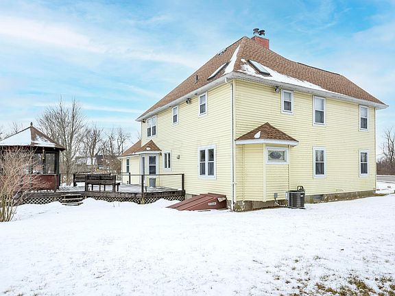 Beautiful 4.88 acre property setting with a spacious 3 bedroom, 2 1/2 bath, 2 story home. Master Bedroom with fireplace and large walk in bath with soaking tub. Additional storage areas off bedrooms. Large Great Room off entry, Dining Room, first floor Den/Office and first floor Laundry Room.Private deck with enclosed gazebo that overlooks the rolling lot down to the stream. Detached 22 x 38- 2 car drywalled, insulated and heated utility garage with huge upstairs storage area and first floor workshop. Footbridge crosses the stream on the property to a 2 + acre pine forest. Very close to many amenities and shopping. Property has the flexibility for possible commercial zoning, but is currently residentially zoned.