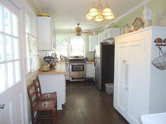 Looking for a home w/ Character? A Large covered front porch welcomes you inside + entry way area w/ double glass doors into a large living room w/ wood floors & tall ceilings. The formal dining room also has wood floors & a massive window seat. Lots of nice natural light w/ updated windows throughout the front of home Updated kitchen with tile countertops. Two good sized bedrooms + large laundry/work room. Sits on a double fenced lot w/ room for a garden & large concrete parking area. New Roof Installed June 2015