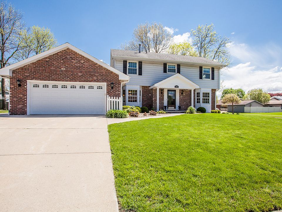 Exceptional 2-story turnkey home w/over 3,000 finished sq. ft. of living, conveniently located by new Berg Middle School. Home has brand new roof, Andersen bay windows, Sterling water softener and soft close Kohler toilets. Meticulous condition w/granite counter tops throughout and main floor integrated sound system. Tastefully decorated w/beautiful flooring throughout home. Five bedrooms, four baths. Beautiful kitchen including stainless steel appliances, gas range, custom wood cabinetry w/easy access pull out shelving. Washer/dryer located on second floor near bedrooms. Large living room, cozy family room w/built in cabinets and fireplace. Sun-room has gorgeous tile and wood ceiling w/ exposed beams. Theater room with integrated speakers in lower level. Crafting area has cupboards, under cabinet lighting and wrapping paper station. Home features Hunter ceiling fans, central vac system. Custom stone wall to downstairs. Maintenance free Trex composite ultra-decking w/lighting.
