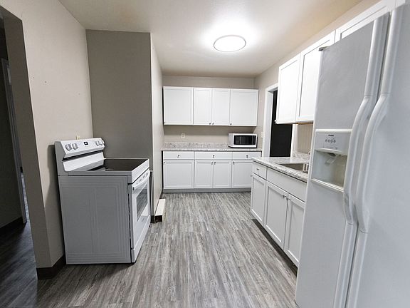 Completely remodeled Three bedroom one bath apartment with private garage bay available if desired! All new kitchen! All new countertops! All new vanities! New, plumbing fixtures! All new LED lighting (saves up to 83%)! New doors! Completely painted! Brand, new luxury vinyl flooring throughout the whole unit! New oven! Etc! Etc! Washer and dryer included! Great for college kids! Also good area for a family with it being located close to the park! available June 1! One year lease, although six month would be an option.