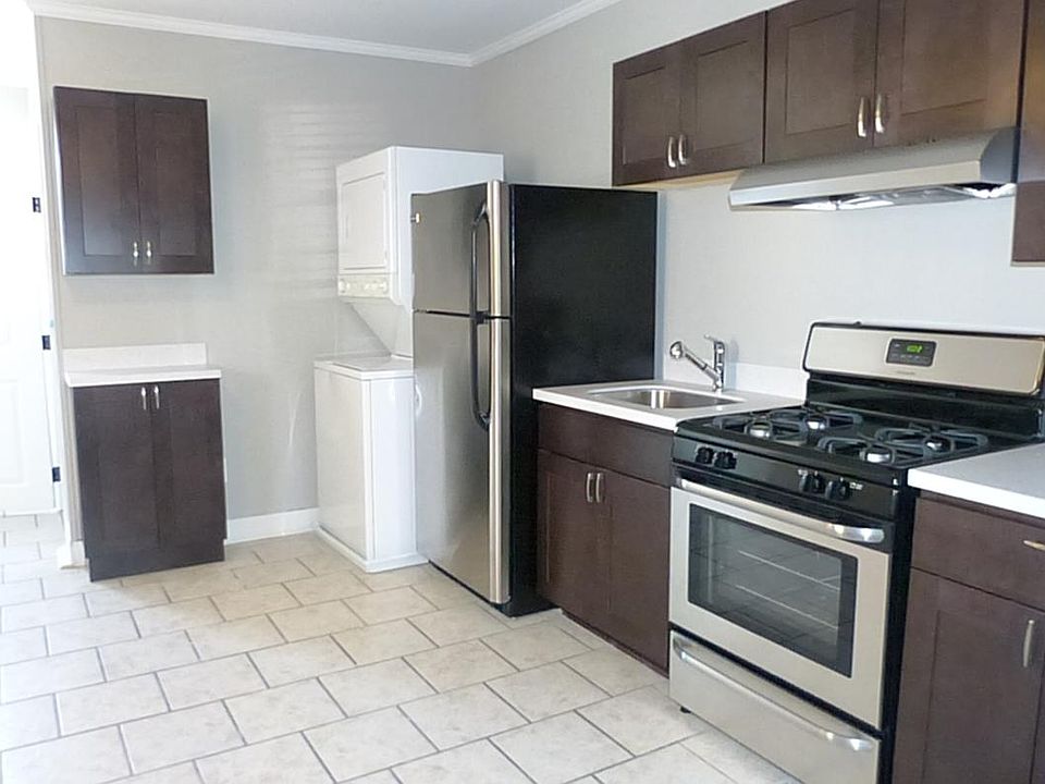 ONE CAR PARKING PAD & ROOFTOP DECK 2 bedroom 2 bath RENOVATED new kitchen and baths stainless appliances, granite countertops wood floors 1 year lease $250 per pet deposit