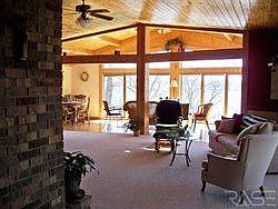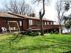 PRICED TO SELL! Lake front luxury! 5 lots and a year around contemporary home with well planned layout for ease of living and entertaining. Over 1500 sq. ft. on main. Lower level has 1400 sq. ft. finished. Beautiful fireplaces on each level. Additional one room cottage on the lake shore. 250' lake frontage. Breathtaking views. All appliances stay and so does the dock. This one owner home is quality built and waiting for you to enjoy! No flooding worries here.