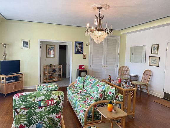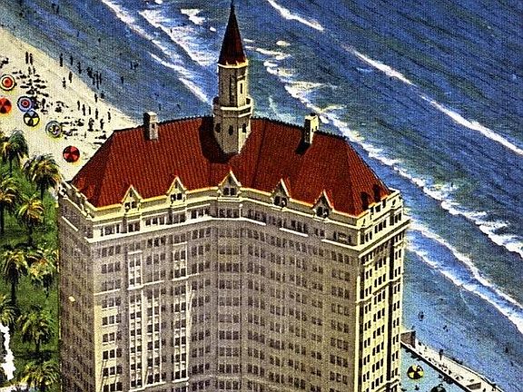 Fully Furnished Unit Live at the beach in a very unique building, The Villa Riviera! Gleaming hardwood floors, plaster walls with coved ceilings, bay windows and deco tile in the bath. Unit comes fully furnished including kitchen cookware, utensils, place settings and bath linens. Huge common area sundeck that offers great summertime fun! There is also a ballroom and lobby in this acclaimed landmark building on the National Register of Historic Places. ALL Utilities, basic cable TV and internet is provided and included in rent. Annual Overnight parking passes available though the City of Long Beach. *building photo is from a vintage post card ... actual roof color green patina cooper