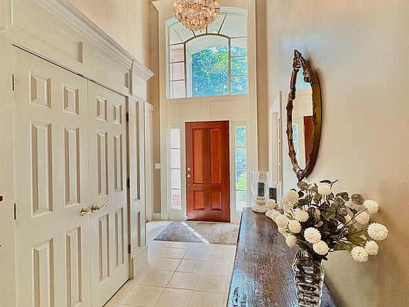 - Sound System, Built-in Desk, Ceiling-9+, Tray Ceiling(s), Ceiling Fan(s), Walk-In Closet(s), Countertops-Solid Surf, Crown Molding, Entrance Foyer, Kitchen Island, Double Vanity, Wet Bar, Main Level Bedroom Suite, Custom Cabinetry