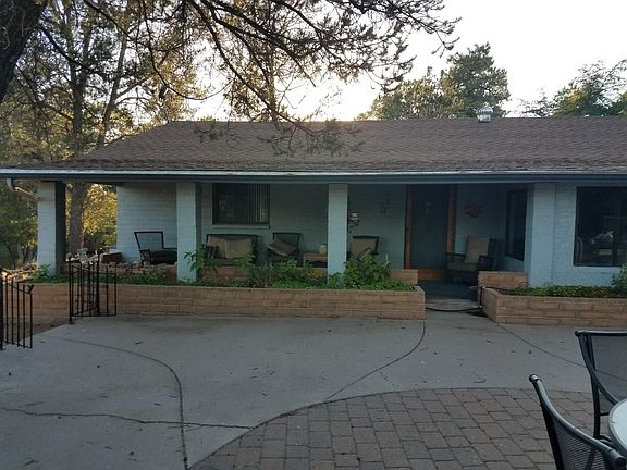 RARE ACRE RANCH-STYLE HOME PROPERTY IN TOWN WITH TALL, COOL PONDEROSA TREES ALL AROUND. COZY FIREPLACE IN THE OPEN-FLOOR PLAN LIVING ROOM. COVERED PATIOS FRONT & REAR. LARGE CABANA OUTSIDE. VERY LARGE CARPORT HAS TWO ROOMS THAT WERE ART STUDIOS AND HUGE STORAGE SPACE. SELLER HAS HAD A NICE PLACE FOR CHICKENS AND GARDEN. PLENTY OF ROOM TO PARK R.V.'s, BOAT OR PARKING FOR GUESTS.