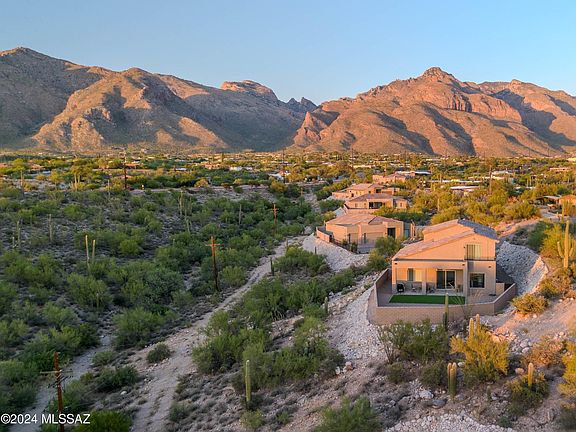 Enjoy a luxe desert lifestyle in this sleek, contemporary home built in 2023 by award winning A.F. Sterling Homes. Stunning mountain & sunset views. Unique opportunity to own a new home in the Catalina Foothills on nearly an acre of land with no HOA fees and District 16 schools! This elegant 3 or 4 bedroom, 2 1/2 bath home has an open living concept w/ high ceilings & beautiful natural light. The main living/dining area opens to a covered entertaining patio & views of Tucson Mountains & sparkling city lights. Extra 1st floor room can be 4th bedroom, den, office or exercise room. Upgrades include an electric vehicle charging port, modern kitchen with large island, primary bedroom w/ private sunset balcony, gorgeous bathroom & large walk-in closet, brick-paved driveway, (more... water filtration, alarm system & 3-car garage! Close to UA, downtown, the Loop, & Tucson's best shops & dining.