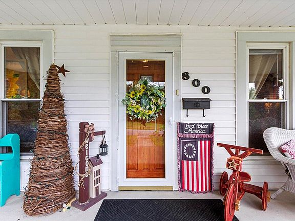 Sit back and relax on the huge front porch of this charming three-bedroom home on the edge of town. This property offers a large, private yard with a newly updated deck, beautiful perennial landscaping, concrete patio and detached three-car garage. Inside you will find a charming traditional floorplan with a first-floor bedroom and bathroom, separate dining room, large utility area and mudroom. Updates include kitchen and bathroom flooring, windows, water heater and some kitchen appliances. Kitchen appliances are included. Schedule a showing to see this beautiful home!