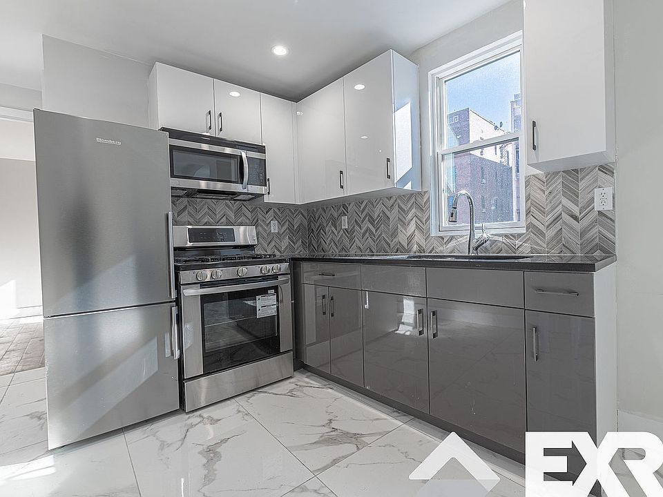 Gorgeous apartment, *with in-unit washer-dryer* act fast, this unit will not last long! Video tour, floorplan, and in-person showings available! Live in this gorgeous new apartment, featuring: - Stunning kitchen with stainless steel appliances, including gas-range oven/stove, and microwave - Sun-filled living room, finished with gorgeous marble flooring - Beautiful bedrooms with hardwood floors - Two modern bathrooms with deep soaking tub, and stand-up shower - *In-unit washer-dryer included!* - AC and heat split-units installed - Private balcony! This elevator building features a furnished rooftop deck, underground parking, bike storage, and is conveniently located not far from the 2, 3, and 4 trains, as well as lots of shops, and restaurants! This apartment will not be available for long. For more information on this unit, contact Yosef (Joe) immediately! - No broker fee! - Pets allowed - Open House by appointment only! (some photos may be of a similar unit in the building)