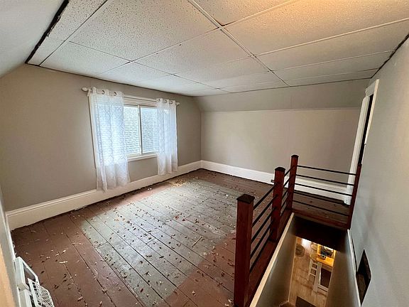 Spacious living area with formal dining room, newer carpeting in living room and main level bedroom, vinyl windows, 2 large bedrooms upstairs with older pine board flooring plus an 8x13 landing area that could easily be utilized for additional living space. Price reflects the need for interior updating. Loads of potential here. Partially fenced yard.