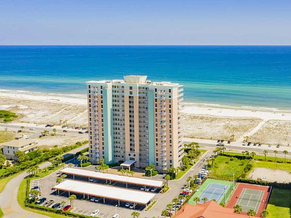 Wonderful opportunity to own your own piece of paradise! Santa Rosa Towers is a gated condo community with so much to offer. You'll enjoy a community pool, tennis courts and protected endless Gulf views. Upon entering, you'll enjoy the open floor plan with breakfast bar and floor to ceiling windows offering fantasic views of the Gulf. The master suite has a walk-in closet and double vanity and linen closet. On the opposite side of the unit, you'll find 2 additional bedrooms and a bathroom. The first bedroom has two queen bunks and the third bedroom has Gulf views. This unit is being sold fully furnished. Washer, dryer and fridge convey. Other notables are sleeper sofa, brand new king mattress in master bedroom, gas grill allowed on balcony, covered assigned parking space (C21) and guest pa