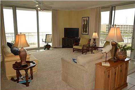 This 3rd floor west end unit offers amazing gulf views and one of the most desirable floor plans on Pensacola Beach! The spacious interior of this unit flows like a detached single family home with the conveniences of condo living. Many of the owners in this tower are full time residents for this very reason. The open floor plan features over 2000 square feet of living space with 3 bedrooms that each have their own private baths and access to a balcony. The highlights of the kitchen include granite countertops, glass tile back splash, breakfast bar, and an adjoining pantry/laundry room. The master suite offers two walk-in closets, double vanity, whirlpool, separate shower, sitting area, views of the Gulf of Mexico, and access to the gulf side wrap around balcony. Other interior features include 9' ceilings, tile flooring, spacious rooms, built-in glass shelves, crown molding, drapes, blinds, and a separate beverage center with refrigerator. The views from this unit are exceptional! This complex is located on the quiet west end of the beach directly across the street from a conservation/recreation area that provides direct access to the beach and amazing views over the pristine dunes onto the Gulf of Mexico. This association has in-house management and maintenance that have earned an excellent reputation. The amenities of this complex include a pool, fitness area, gated entrance, and community room. This exceptional unit is being sold furnished and includes a covered parking space.