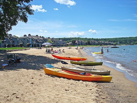 Totally updated deluxe upper end-unit at the highly desired "Harborage" association. Three bedrooms and three full baths plus a loft den/office. Two master suites with full baths. Million dollar sunsets over beautiful Lake Charlevoix! The Association owns 2500 of lake frontage with a private sandy beach. Two tennis courts and a pitch and putt golf area. Adjacent to The Harborage Marina. May be the nicest unit at The Harborage!