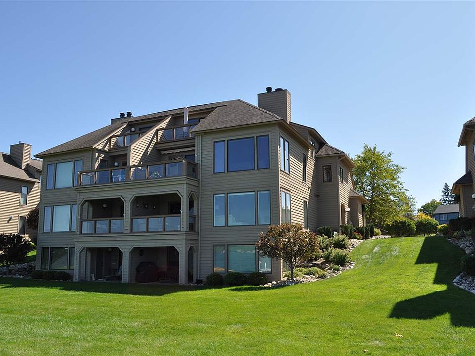 One of the largest condos in the Harborage development, a much coveted corner unit has 5 bedrooms and 4 full baths and over 2700 sqft of living space. This ground floor walkout has been updated, granite counter tops, wood floors new windows, air conditioning, one car garage and so much more. Incredible sunset views and 2500 feet of shared access to some of the best sand on Lake Charlevoix. This turn key condo is being sold partially furnished.