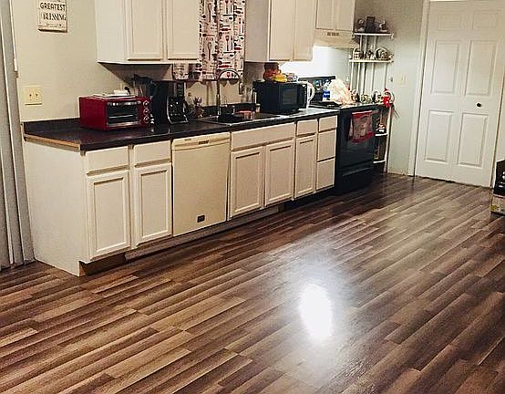 Remodeled in 2019. New flooring, baseboards, paint, and some windows replaced. HVAC serviced in 2019. New hot water heater, both bathroom sink vanities replaced and new, new kitchen cabinets and countertop. 4 bed and two spacious bathrooms. Big back yard on a corner lot with a private driveway. Priced to sell as is. It won't last long at this price! Please click on the Virtual Tour for more photos and an important message.