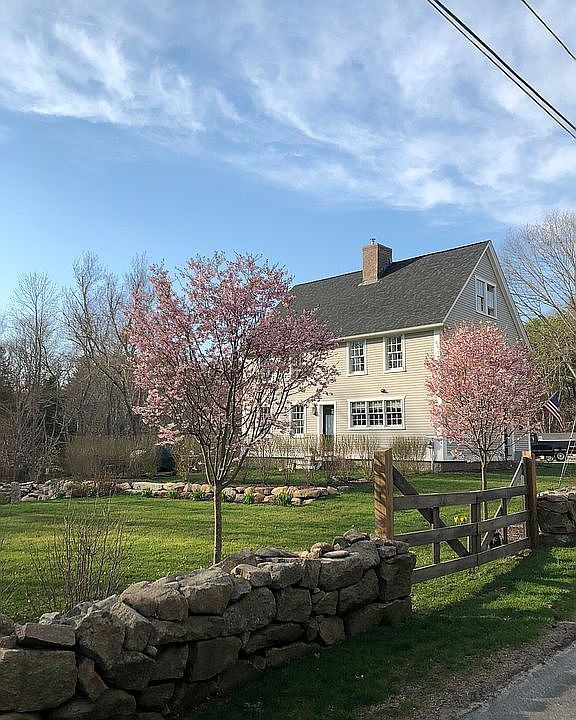 Vintage colonial with all modern amenities set on one private acre in a country setting. A total of five spacious bedrooms with two full and two half baths. Completely remodeled "to the studs" in 2016. New Andersen 400 Series windows, electrical, plumbing, roofing and gutters, doors, plaster, 1500 gallon septic tank, spray foam insulation in walls and ceiling and central vacuum. Essentially four years new! The first floor consists of a spacious living room with a large stone fireplace complemented by an open kitchen with dining area. The kitchen has wonderful custom cabinetry with wood countertop New hardwood floors throughout this floor. In addition, there is a half bath. The second floor includes the charming original hardwood floors and staircase. The primary bedroom has an en-suite bathroom which showcases a custom made vanity, heated tile floor and oversized tile shower. Completing the second floor are two additional bright and spacious bedrooms which share a large second full bath with tub. The second floor hall bathroom also has the comfort of a heated tile floor plus the convenience of a laundry. The versatile third floor has the original hardwood flooring and staircase, too, plus two more large and bright bedrooms. A half bath completes the third floor. The basement, has the original granite foundation and a pellet-furnace for heat. The exterior of this unique home is cedar clap board with low maintenance Azak trim.