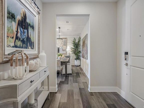 “The Carlyle Carlsbad Village” Located at the heart of Carlsbad’s “Village by the Sea” this luxury penthouse condo and former model has ocean and sunset views and comes fully furnished. Single level open concept with modern high-end finishes yet a laidback beachy feel. The open concept design expands even further (315 approx sq.ft.) when the patio doors disappear into the wall and bring in light, the sea breeze and provide an extra dining, lounge, TV and BBQ area. On the nights you decide to forgo the many popular downtown restaurants, there is a highly upgraded island kitchen with 6 burner Bertazonni stove/oven, Subzero refrigerator and beverage / wine refrigerators fit for a chef. Design features include shiplap walls in living/dining areas and the ceiling in primary bedroom with crown modeling, custom fixtures, hardware and custom chandeliers throughout, motorized sunshades in primary and 2nd bedroom plus coverings on all windows. Other features include custom tile wall in master and guest bath, custom wall coverings in both bedrooms, modern ceiling fans in bedrooms, beautiful foyer, large pantry and laundry room with 160 bottle wine closet. Swag light, BBQ, TV and fan on ocean view patio with wood ceiling. 4 large screen Tv’s convey. Keypad or fob to enter building lobby with 2 elevator, decorative halls and large foyer areas on each floor, pool with cabana area, secure garage with 2 side by side parking spots plus private storage locker for bikes, surfboards and beach toys. Building has trash and recycle chutes on each floor and game room / sitting area near east elevator.