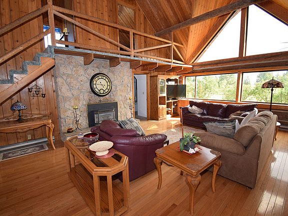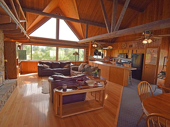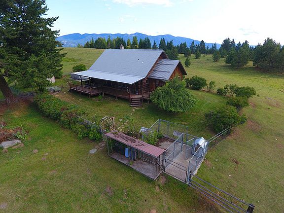 HIDDEN PARADISE- 157+ picturesque acres w/ stunning mountain views surrounded by meadows and forested lands, private pond, seasonal springs, abundant wildlife and it's bordered by US Forest Service! Homestead includes a 1586sf traditional, chink-style log home. This 3BD, 2BA craftsman style home features an inviting open floor plan with vaulted T&G ceilings, built in stone fireplace (Nat. Gas), country kitchen/dining w/ lg breakfast bar, wood flrs, M Bdrm suite on the main level and full length covered deck overlooking your own private pond! All of this plus a 30x46 shop/garage, 14x32 RV cover, 40x40 barn, fenced dog kennel, fenced & cross-fenced w/ lg pasture & so much more. City power, natural gas, private septic and well. Peaceful end-of-the-road setting, yet just minutes from town!