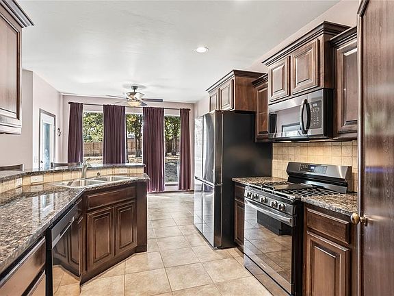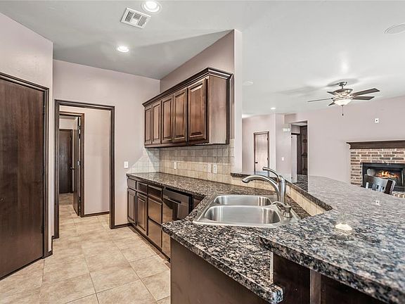 Imagine weekend barbecues and s’mores around the fire pit. Enjoy your own little bit of country under the towering oaks. Edmond schools on beautiful tree covered 3/4 acre in Logan County. Multiple upgrades including Generac whole house generator, new appliances that stay with the house. This beautiful 3 bedroom/2 bath/ 2 car garage split floor plan offers what your heart desires. Open den with cozy fireplace and picture windows looks out on expansive backyard with mature oaks. Formal dining/or second living with picture window views of restful setting. Primary suite features covered patio, bath with double vanities, jet tub, separate shower, and immense closet. Additional beds are in opposite wing. 2nd bath offers linen closet and tub/shower combo also hallway builtin. Oversized garage with storm shelter. Outbuilding in backyard for lawn equipment and raised beds for gardening. Short stroll to fishing pond, neighborhood playground, and basketball court. All that’s missing is you!