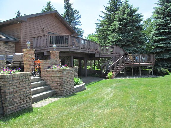 Gorgeous home on unbelievable lake lot with 237 feet of lake frontage! Gorgeous views with great landscaping with huge decking system and outdoor kitchen facing the lake. Large master suite with patio doors to lake deck and fireplace in master. 4 bedroom, 4 baths, 2 additional family rooms, 4 fireplaces, tons of store, workshop off garage. tons of cabinets in kitchen with brick arched gas stove and double ovens. 2 furnaces, main floor sun room. West bar in lower level family room. New Shingles. Once in a lifetime opportunity with this one.