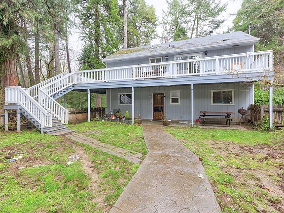 Wonderful Setting among majestic trees on this waterfront property! Head down to the year-round creek and enjoy your own private piece of nature. Gated entry leads to the house which was built in 1976 but has had some recent upgrades, including new flooring throughout. Sitting on 5.08 acres the home features 3 bedrooms, 2 bathrooms, approx. 2016 sqft., nice kitchen on the upstairs level, with refrigerator, DW, R/O, and dining area with slider to wrap around deck. Large living room off kitchen with slider to the deck. Also, on the upstairs level there is a bedroom with slider to the deck and a den/office which could be 4th bedroom. On the ground level hosts a family room w/fireplace that has a woodstove insert, 2 bedrooms, a bathroom and laundry room. Patios out front & back of the house and a detached 2 car garage with attached carport. Relax in your meditation hut tucked away in the garden. Fenced garden area. Enjoy picking your own apples, pears, grapes, and blackberries.