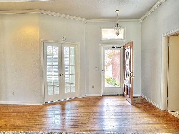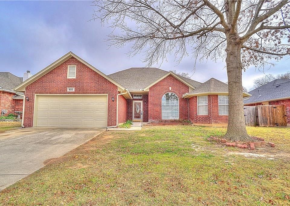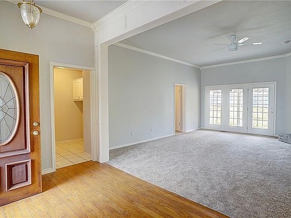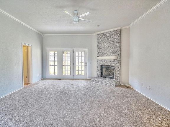 Just repainted inside and out. New carpet in living and all beds. Corner fireplace in living with high ceilings and crown molding. Split bedroom plan, master has shower and jetted tub and two walk in closets. Fans in all beds. Bright kitchen with 6 foot island for extra counter space. Study with French doors off living. Covered patio Wood floor entry and hallway. Lots of linen storage here. Easy access to Tinker. Handicap ramp to front porch.