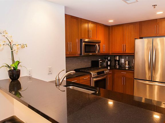 This spectacular 2 bed 2 bath condo has it all! The open feel configuration is great for entertaining! contemporary kitchen with granite countertops & Stainless steel appliances. Generously sized bedrooms with generous closet space. The primary suite is complete with walk-in closet & en-suite bathroom. Plus in-unit washer/dryer, Central heat/air and recently installed water heater. Full amenities building features: Concrete & steel construction, Virtual Doorman, secured package room, Roof deck, gym, community room, 2 elevators. Easy access to Lightrail, Hoboken PATH, bus, with easy access transportation to NYC. Be part of the Hoboken community with it's vibrant culture, shops: a block away from Shoprite & 10 mins from Trader Joes, cafes, and restaurants. Tax Pilot program runs until 2028. Transferable In building rental parking.