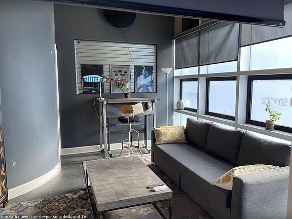 Large light-filled 1 Bed, 1 Bath Live/Work loft in an amenity-rich building in the heart of Downtown Oakland. Sleeps up to 4 people. Funky industrial loft for fun, work, or any mixture of the two! Spacious with a great vibe to help create the perfect atmosphere whether you need to rest, work, or enjoy some afternoon cocktails. This is a corner unit with a private entrance. It is a newer building and soundproofed. Come live/work/play while you're surrounded by over 100 concert posters! One bedroom, bathroom and living room are upstairs, with the kitchen and second living room downstairs. A full size washer and dryer are in the unit. Building amenities include a gym, business center, sauna, steam room, & rooftop deck plus 1 reserved garage space with a charging station. This is a furnished home, generally for shorter term leases. I can be flexible on terms. All utilities are included. Parking space available with (pay per use) charging station. Small pets allowed with an additional $50 fee per pet. There will be a $150 cleaning fee included as well. No smoking in the unit but smoking is okay outside.