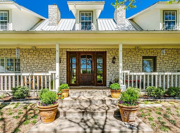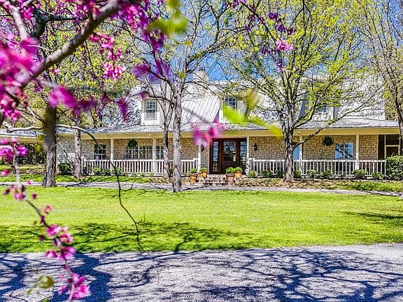 Incredible opportunity on the highly coveted Jenkins Rd. Amazing 15 acres w 2 homes in Aledo ISD! Beautiful mature oak trees create a park-like setting as you pull up the circle drive! The picturesque stone farmhouse boasts an amazing open living w soaring ceilings & tremendous stone fireplace. Wonderful farmhouse kitchen w vintage style ceiling, all open to the dining & cozy den w handsome fireplace. Large master suite w fireplace & enormous bath. Office & guest bed down w 2 beds up. Sit & listen to nature on the beautiful covered porch & gaze over the gorgeous pastures that lead to the Clear fork of the Trinity River. Guest house w open living & kitchen, 2 beds, & 2 baths. 3stall shedrow barn w feed-tack room