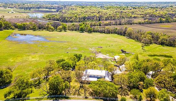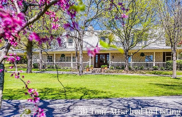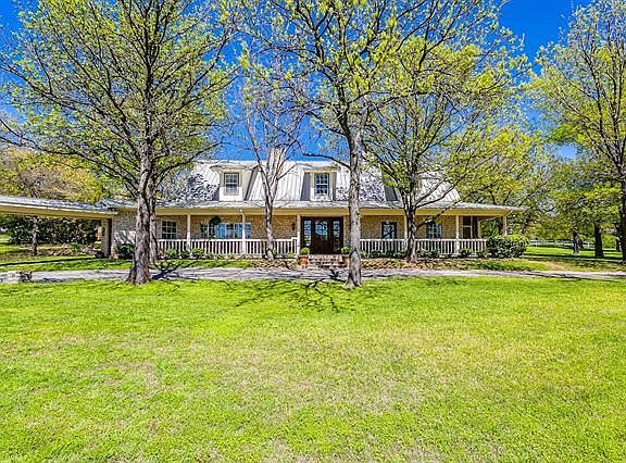 3D Tour Available! Incredible opportunity on the highly coveted Jenkins Rd. Amazing picturesque stone farmhouse on 13 acres in Aledo ISD! Beautiful mature oak trees create a park-like setting as you pull up the circle drive! The home boasts an amazing open living w soaring ceilings & tremendous stone fireplace. Wonderful farmhouse kitchen w tons of cabinets, granite counters, & vintage style ceiling, all open to the dining & cozy den w handsome fireplace. Large master suite w fireplace & enormous bath. Office & guest bed down w 2 beds up. Sit & listen to nature on the beautiful covered porch & gaze over the gorgeous pastures that lead to the Clear fork of the Trinity River. 3stall shed row barn w feed-tack room