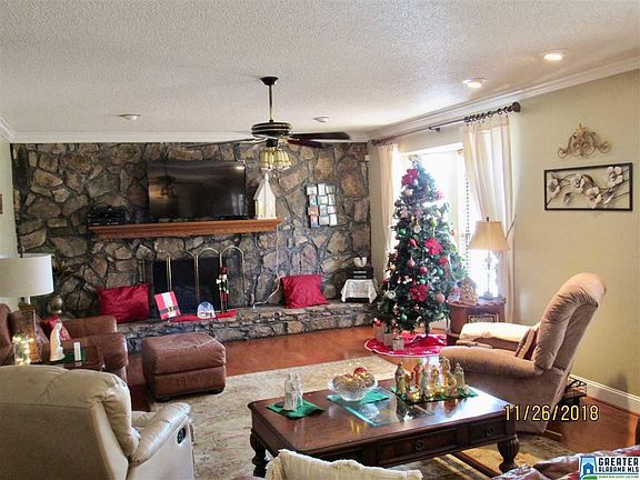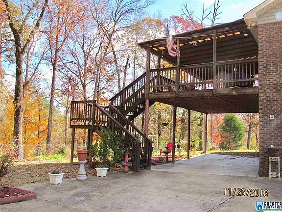 One level full brick home with privacy. Very spacious home with large kitchen and lots of cabinets. Two fireplaces. One in Great room upstairs and another in basement den. Lots of tile and hardwood floors. Big covered porch with beautiful wooded view.