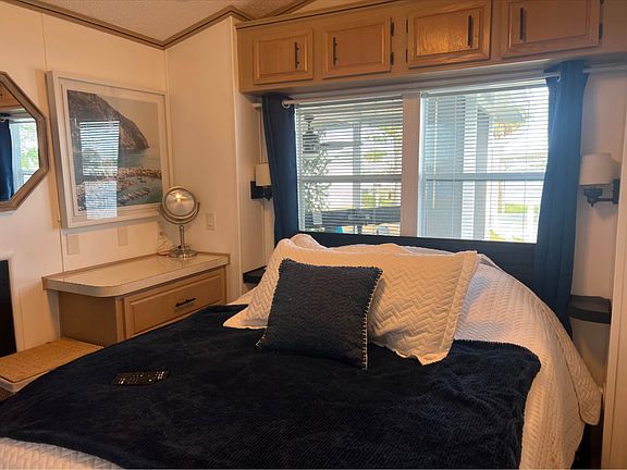 Beautiful remodeled water view mobile home. Located in an all ages RV resort. Unit has a beautiful screened in porch. Great for the sunsets. We are closed to several hospitals, shopping, dining. Easy access to the highway Home has been recently painted and laundry room added This unit is available from May 1 to October 1