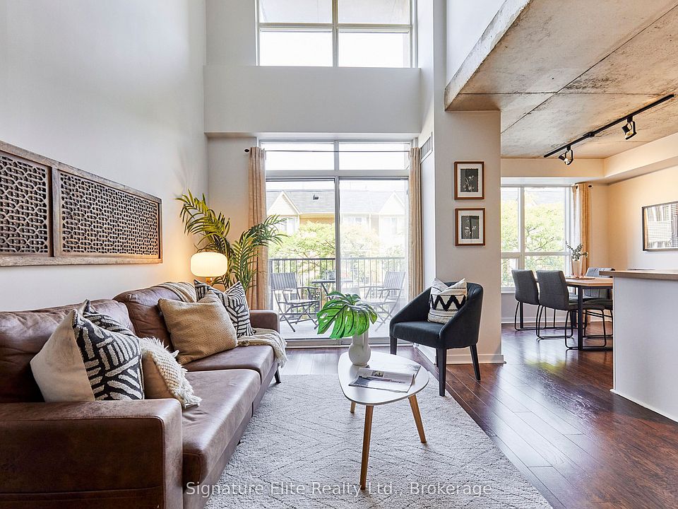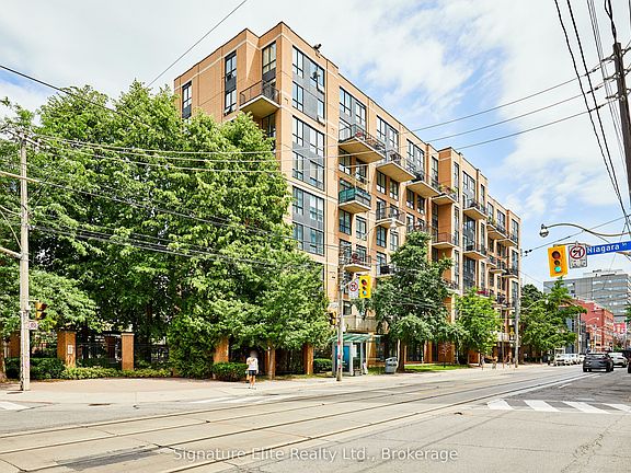 Loft living at its best in one of Toronto's most vibrant neighbourhoods. This rare two-storey unit at 800 King St W blends authentic industrial character with modern functionality, featuring exposed concrete, soaring double-height ceilings, and dramatic warehouse-style windows that flood the space with natural light. The main floor offers an open-concept layout with a functional kitchen, breakfast bar, and full-sized appliances, flowing seamlessly into the living and dining area - ideal for both everyday living and entertaining. Step out onto your private balcony for a quiet retreat in the heart of the city. Upstairs, the mezzanine bedroom combines privacy and style with a large double closet, while the adjacent den provides versatility for a home office, reading nook, or creative studio. Monthly fees include heat, hydro, water, and A/C, keeping ownership simple and cost-effective. An owned locker and building amenities, sauna, party room, and on-site security add further convenience. The location is unbeatable. At King and Niagara, you're steps from Trinity Bellwoods, Stanley Park, the waterfront, and some of Toronto's best restaurants, cafés, and shops. With the TTC at your doorstep and a neighbourhood known for its energy and lifestyle, this is true Toronto living. Perfect for first-time buyers, investors, or those seeking a stylish, low-maintenance home in the city's core, this loft offers a rare chance to own a piece of Toronto's urban fabric. Immediate possession available, don't miss it.