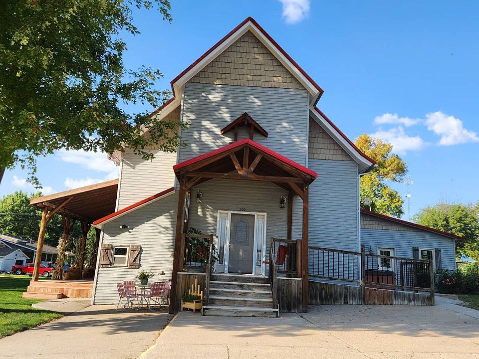 New in Sept. 2025 - fascia and soffit. Modern Updates, historic charm, tons of space.....what more could you want!! This totally renovated, former church, located on the eastern edge of Wolbach has many options to offer its new buyer! With a large covered porch, mature landscaping, hot tub on patio, and country views - this property says, "Welcome Home" Enter in through the front foyer and let your imagination carry you away. Lots of original hardwood, storage cabinets, railings, and staircase from the heart of the church which got its start in the early 1900's. Main floor living offers 2 or 3 bedrooms, 2 full and one 1/2 bath, wide open kitchen with natural gas fireplace, updated appliances, family room and tons of storage. All of the bedrooms have large walk-in closets and a full or half bath attached. Enter the master bedroom through a beautiful set of French doors. The en suite bathroom has been tastefully redone with thoughtful planning. There is a separate claw foot tube just waiting to help you soak your worries away! Lots of large windows provide an abundance of natural light. Laundry area with lots of cabinets is just off the kitchen for your one level convenience. The second level boasts a spacious family room, sitting area, office/library and full bathroom. A large, stained glass window - original from the church - adorns the peak on the north. Also a second floor workshop or additional storage area. Original church built-ins and woodwork add to the character and charm. This spacious area can really be used for anything you can imagine. If you need more - just head downstairs. Basement can be accessed in two separate locations - making this an excellent opportunity to use it for yourself or as an investment. This space could be rented as an apartment or AirBnB. There are 2 bedrooms with large closets, a fully updated bathroom, family room, additional kitchen and laundry area in the basement level. Large pantry and storage areas complete the extra 1,640 sq feet. Beautiful views outside from the full covered porch, or from the hot tub on the patio. Property includes a large shed with heater and more storage. This one-of-a-kind property needs to be seen to be appreciated. Every room has a story and includes some history about the town - church, school, and local businesses. Additional furnishings are negotiable. If you are looking for a beautiful, spacious, residence with modern updates, yet vintage charm, you NEED to see this one. Plenty of extra room on the property to add a garage or additional shop. Give me a call for your private showing! Brenda with Mach1 Realty.