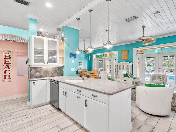 Beautifully located pool home with gorgeous views of Lake Wellington. This three bedroom, two bathroom home has updated bathrooms and kitchen with tile floors throughout. Enjoy bug free nights on the screened in patio. Large dock, refinished with composite boards for low maintenance, perfect to keep a boat. Garage has been converted to air conditioned space, great for a home gym or play room. Impact windows and doors, roof was replaced in 2021, AC in 2019 and water heater in 2022.