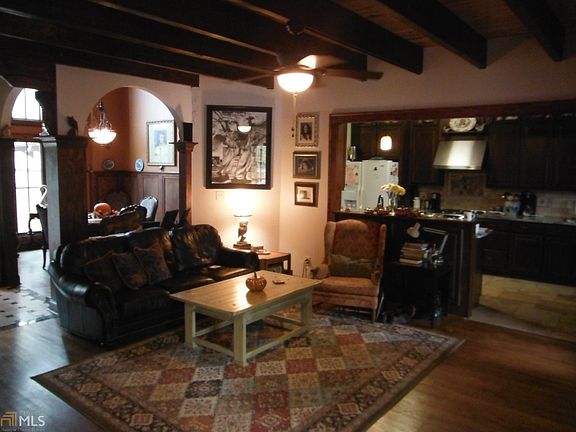 Beautifully totally renovated home in a European Tudor style. Oak beams in living room ceiling with ambered knotty pine tongue and groove ceiling. The dining room has a tall coffered mahogany stained ceiling. This is a one of a kind home with extensively ornate English chestnut trim throughout. The master has a beautiful tiled floor & shower. French doors lead to the gorgeous rustic back porch that over looks a private back yard with a salt water pool. The main floor is 3/4 inch oak hardwood flooring, and the beautiful upstairs bedroom has knotty pine flooring. A separate bonus room is also upstairs. Three large bedrooms and three full bathrooms all exceptionally built to match the European Tavern like theme. No home like this one available. Call now!