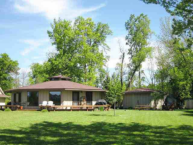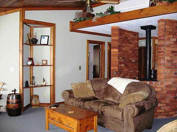 If you like Individuality, this unique octagon home is the ticket. It is well maintained & in move in condition. New roof on the home and garage installed at the end of the summer of 2010! The great room has vaulted wood ceilings & serene lake views plus a wood burning stove with brick hearth. The spacious lot offers uncrowded living. There is 90 ft of level lakefront, a lakeside pavilion deck & seawall. The well kept neighborhood is private & surrounded by nature. New shingles on home and garage Sept 2010.