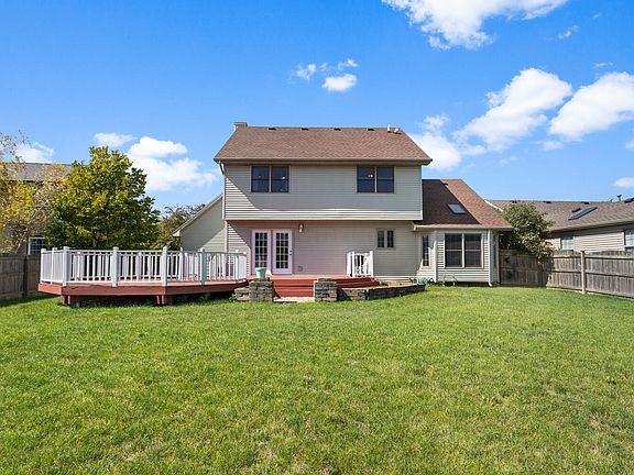 All the curb appeal on the outside and amenities on the inside make this home great! The family room is open to the kitchen which features maple cabinetry, granite, breakfast bar and stainless appliances. The dining and flex room have vaulted ceiling with french doors off the entry. Three bedrooms upstairs with a large primary suite. 4th bedroom room in the finished basement offers space for an office or guest room with a full bath. Plus extra space for another family room, play room or workout equipment. The backyard is fenced with a large deck off the back perfect for entertaining! Close proximity to Carrie Busey Elementary, parks, Industrial Donut, Ginger Ale's, and shopping! New roof & A/C 2021