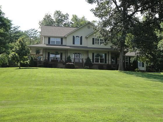 Peace & tranquility surround this 4bd/2.5ba custom built home on 54 +/-ac. Creek runs along 1 side & across bottom part of property. 10 ac cleared as pasture, 1 room honeymoon cabin, 2-car attached & detached garage, children's playhouse, custom cabinets, wraparound porch, barn, RV Parking. Truly a must see!