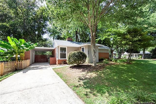 Mid-Century Brick Ranch in Hot Collins Park! This 3 bed 1.5 bath charmer sits on a corner lot, in a desirable quiet cul de sac street. Features include original oak hardwood flooring, updated bathrooms with subway tile & new fixtures, a large brick fireplace in the living room for those cool autumn nights & a private backyard oasis perfect for entertaining friends & family. This well maintained home has a brand new 30 yr arch shingle roof, HVAC replaced in 2017 & a fully fenced back yard make it a must see. Fresh paint, large insulated replacement windows & tons of original character highlight this home as well. Paver patio, covered carport adjacent to side entrance and a workshop for extra storage/utility. This gem is just a short stroll to the Scaleybark light rail station, minutes to Park Rd Shopping Center, easy access to places like OMB, Queen Park Social & Brewers at 4001 Yancey. Just 5 minutes to Southend, 10 minutes to Uptown & 10 minutes to Southpark. Come see it today!