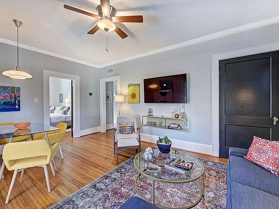 800 Magnolia #3: Bright 2BR near Uptown w/ Balcony FULLY FURNISHED with utilities included - This property is part of the Home Collection-Charlotte's Boutique Furnished Residences. We have over 30 different residences all within 2 miles from downtown Charlotte! Comfortable 1st-floor 2br apartment located on a quiet residential street in Historic Dilworth, 1.5 miles from Uptown. Perfect for long- or shorter-term stays with a fully equipped kitchen, wifi, and a screened porch for dining and relaxing. The house is well stocked, including quality linens, surprise snacks and beverages, and small items to make the stay more comfortable. All utilities, Wifi, and Hulu TV LIVE are included in the monthly rent. The neighborhood has a mix of stately homes and craftsman bungalows, many built in the early 1900s, along with several vibrant commercial areas that provide an abundance of local restaurants and shops, making Dilworth the most pedestrian-friendly, walkable neighborhood in the city. Located just 1.5 miles from the central business district (Uptown), you'll be able to walk to 3 parks, two full-service grocery stores, 40+ restaurants (Thai, vegan/raw, Indian, Italian, Peruvian, new American etc.) massage studios, coffee shops, art galleries, consignment stores, neighborhood pubs and other amenities, along wide sidewalks under huge willow oak trees. Within just a couple of blocks are many dining options, including a sushi restaurant, one of the best Italian restaurants in Charlotte, coffee shop, yoga studio, several neighborhood pubs (one with live music most nights), a popular breakfast spot, a full-service grocery store, and a park with a tennis court. Our property is indeed close to parks, food and coffee! A transit stop 1/2 block away provides bus service directly to Uptown, the Convention Center/Time Warner Arena/Panthers Stadium and in the other direction to SouthPark (upscale shopping) every 15-20 minutes. The Lynx Blue Line light rail is only a 15-minute walk away, with trains going directly Uptown in 10 minutes. Carolinas Medical Center (Levine Children's Hospital) is 4 minutes away by car, or an easy 15-20 minute walk. We are a dog friendly home, no cats are allowed in the property. 2 dogs max. Dogs must be crated when they are left unattended in the home. We do not allow pets on furniture or beds, and all waste must be cleaned up from the yard Please apply here!FULLY FURNISHED with utilities included