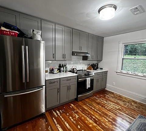 Historic home in downtown Parkville with modern conveniences. Includes all utilities. The apartment is the top two floors of an Edwardian home completely rehabbed to offer modern finishes. Lots of natural light from the oversized windows. Newer stainless steel appliances and wood floors. Living Room, dining , kitchen , two bedrooms and two bathrooms. Newer deck at the back door. First floor entry with original staircase. Walking distance to Downtown Parkville, English Landing and Platte Landing Parks. Small town charm minutes from the airport, downtown and Fort Leavenworth. This is a non smoking, no pet building. Owner pays all utilities: Electric, water, sewer trash and WIFI. Parking is on street.