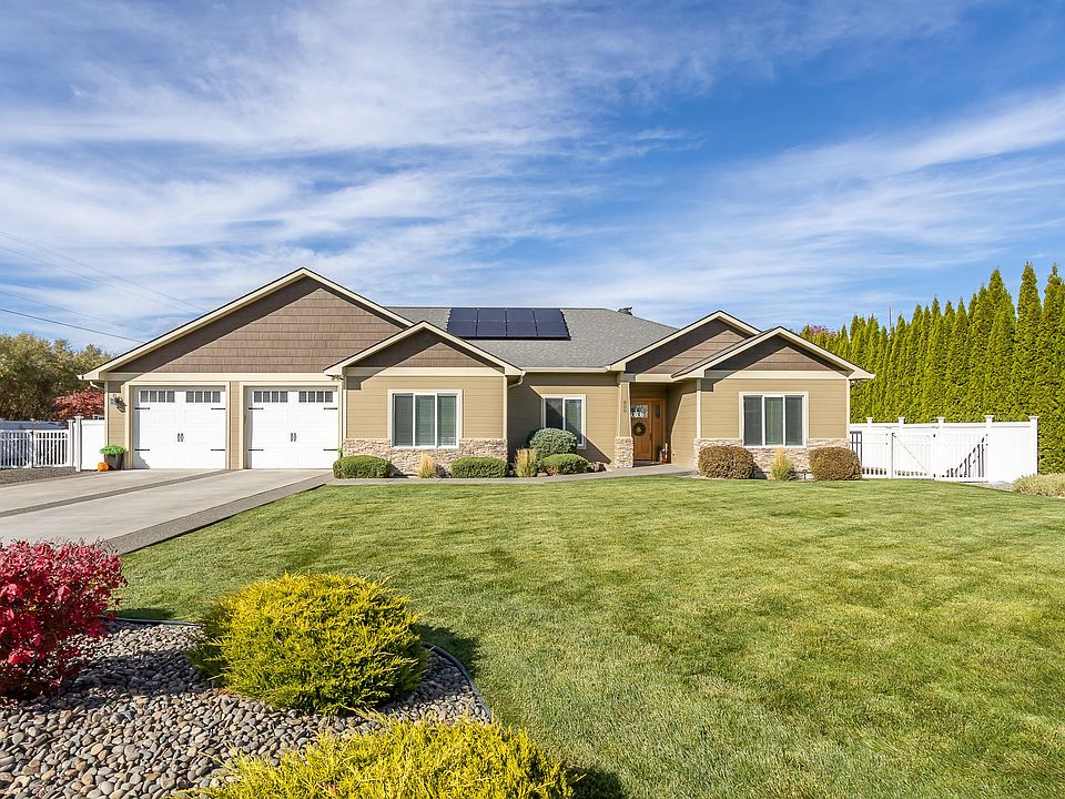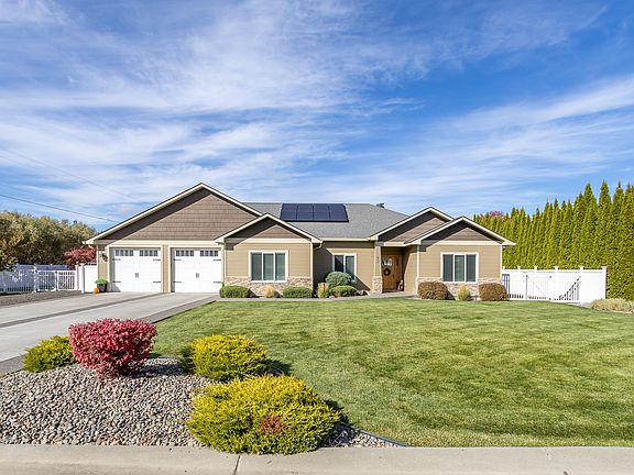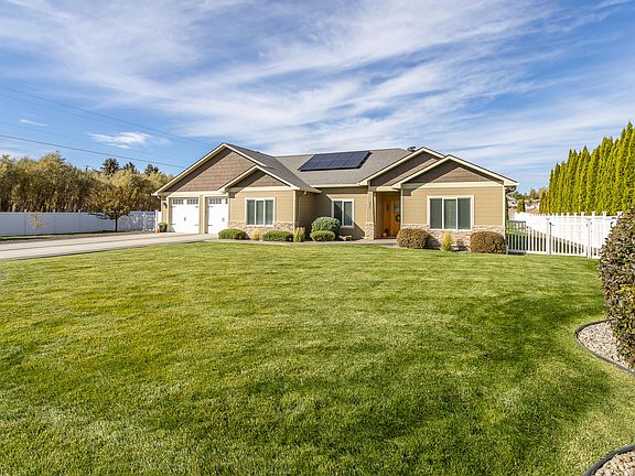 This West Valley home features an open floor plan, updated appliances, lots of natural light, an expansive fenced & gated yard & solar panels on almost a full acre in a desirable neighborhood. The great room has new Mowhawk wood grain laminate flooring & high ceilings w/ built-in speakers. The chef's kitchen has slab granite, a walk-in pantry & stainless steel appliances including a new refrigerator/freezer. The master bedroom opens to the pergola covered hot tub, facing west to enjoy sunset views. The en suite bath has double vanities, a glass enclosed multi-faucet shower, jetted tub & multiple closets including a walk-in complete with cabinet and shelving systems.The backyard features a large covered patio, garden bed, apple trees and an insulted workshop with 220 power & loft storage.