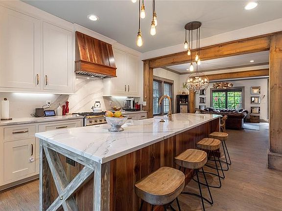 - Kitchen Features: Breakfast Bar, View to Family Room, Stone Counters, Kitchen Island, Solid Surface Counters, Cabinets White